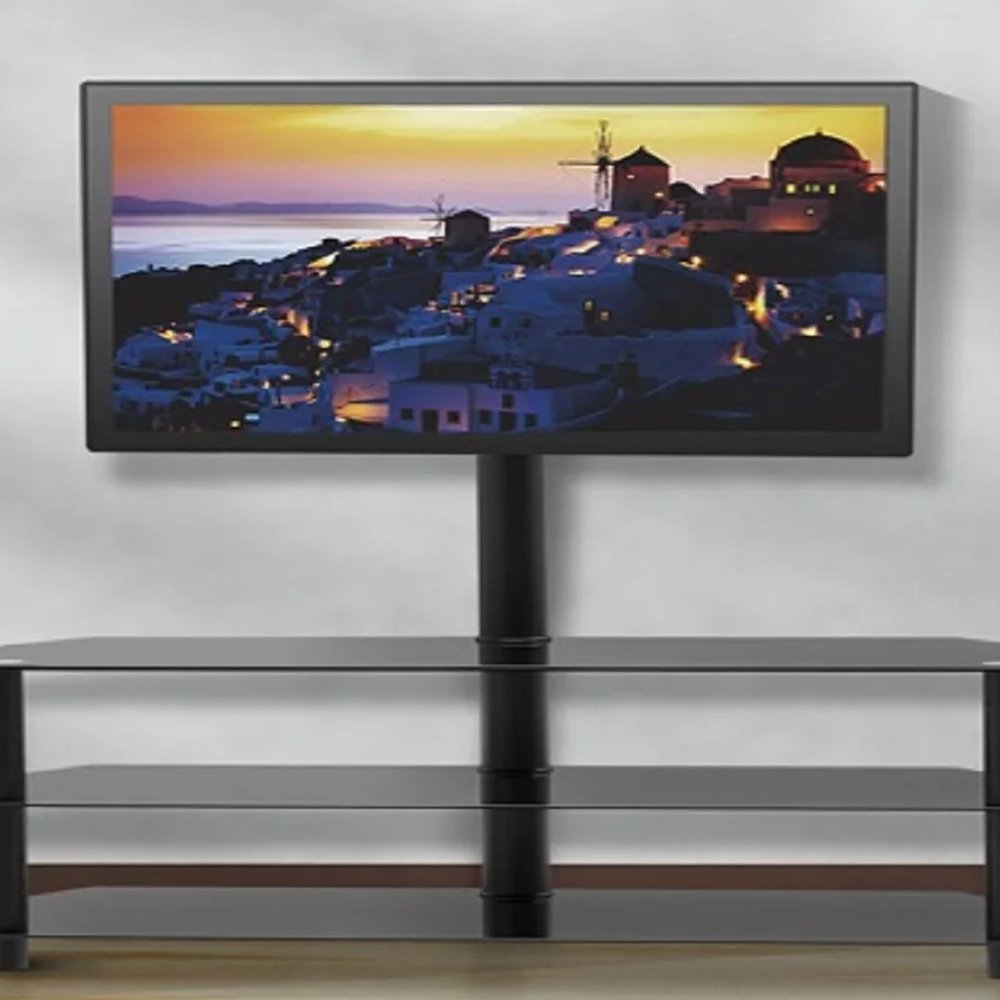 Sleek Tempered Glass Shelf: stores your cable TV box, satellite receiver, gaming consoles.